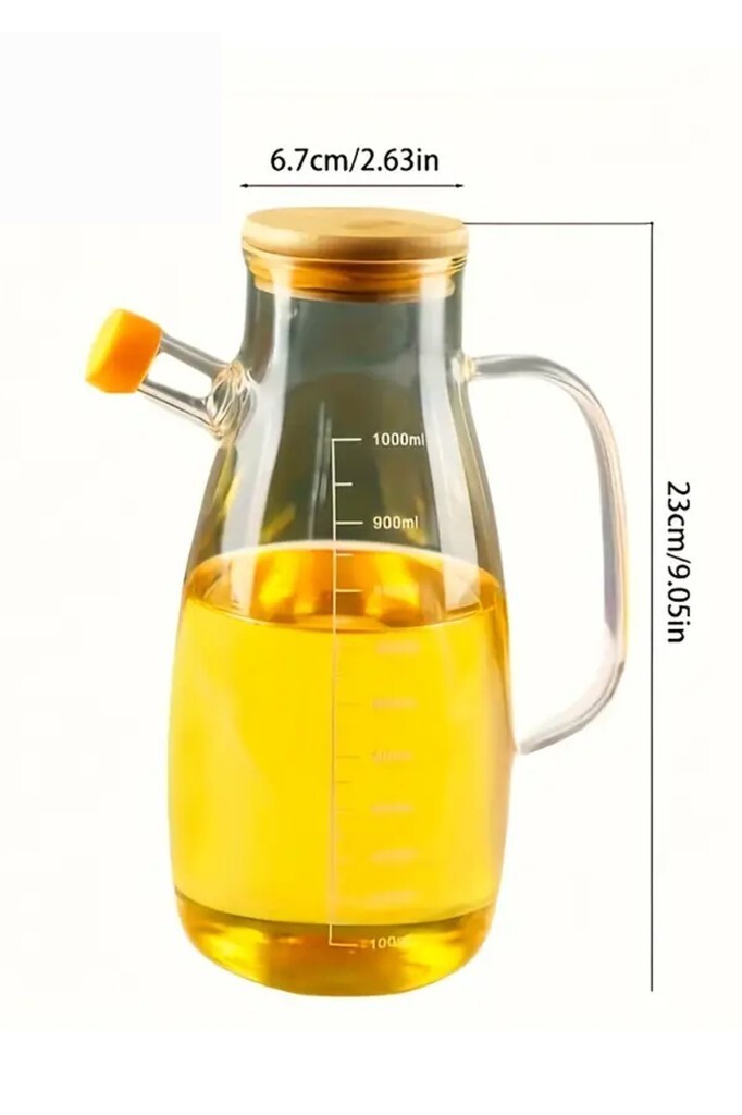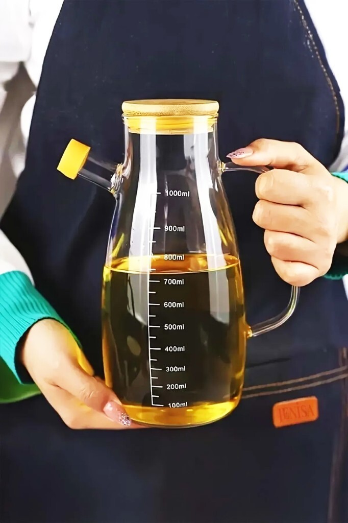1000 ml hacme sahip bu cam yağdanlık, sıvı yağlarınızı pratik şekilde saklamanızı ve dökmenizi sağlar. Bambu kapak detayı ile doğal bir dokunuş sunar. Şeffaf cam tasarımı sayesinde içeriği kolayca görebilirsiniz.