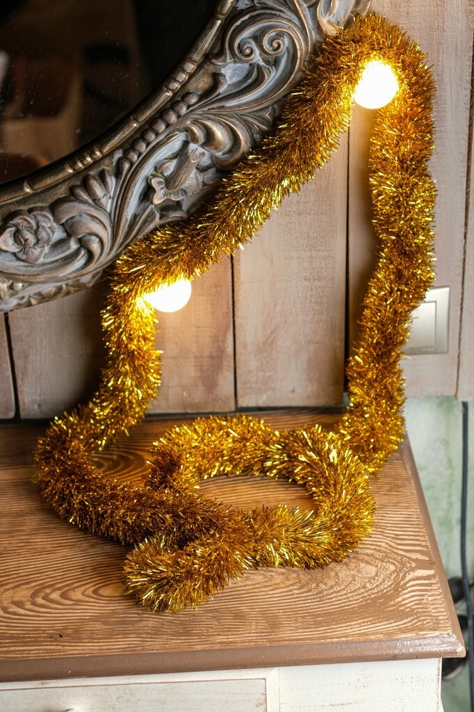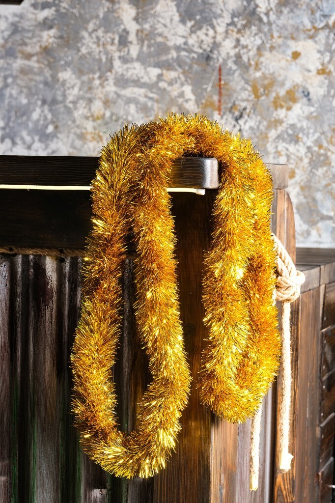 Beysüs Yılbaşı Çam Ağacı Süsü Sim 2 m Gold Ürün görselinin aynısıdır, 2 metre uzunluğundadır, yılbaşı sim süsü tüm parti ve eğlenceleriniz de rahatlıkla kullanabilirsiniz. Dolgun yapısı sayesinde oldukca şık görünmektedir.
